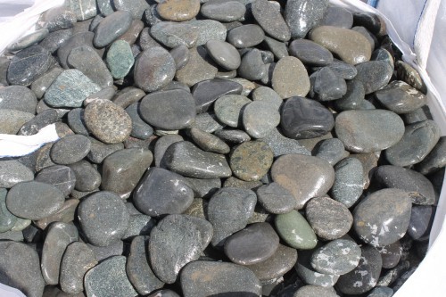 Галька речная плоская (темно-серая) фр. 100-200-300 мм.