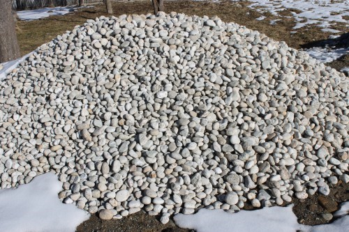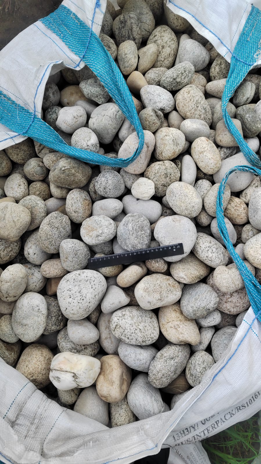 Галька горная речная окатанная (серо-белая, "страусиные яйца")
