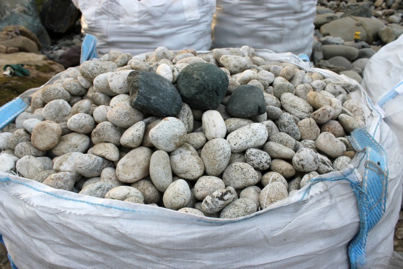 Валуны размером до 400 мм привозят в биг-бэгах. Валуны большим размером привозят навалом в фурах. В последствии их выгружают спецтехникой при использовании тн чалок.