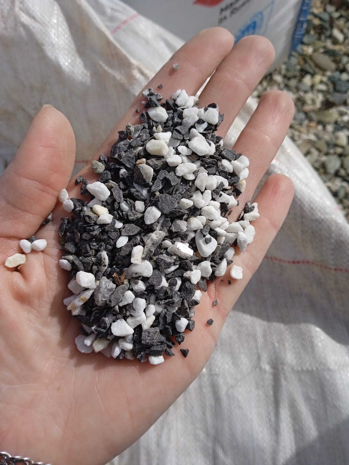 • Мраморная крошка (щебень галтованный микс:: белый-черный) фр.5-10 мм