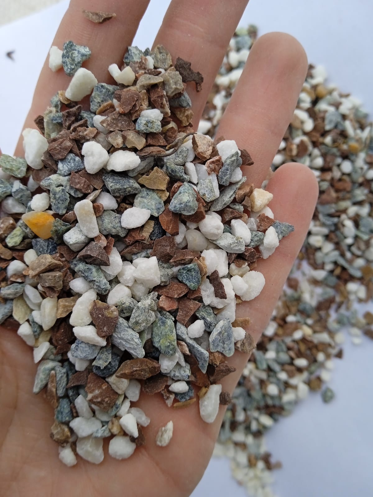 Мраморная крошка (щебень крошка микс : белый-черный-розовый) фр. 3-5 мм.