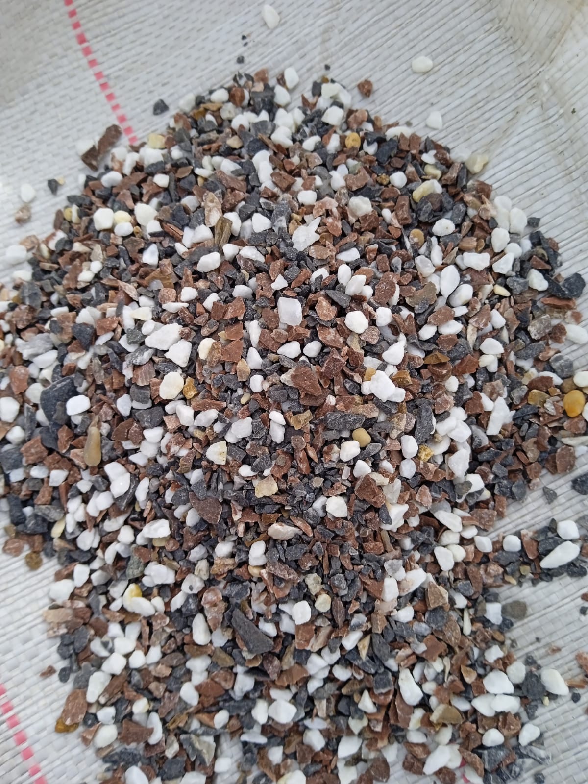 Мраморная крошка (щебень крошка микс : белый-черный-розовый) фр. 5-10 мм.