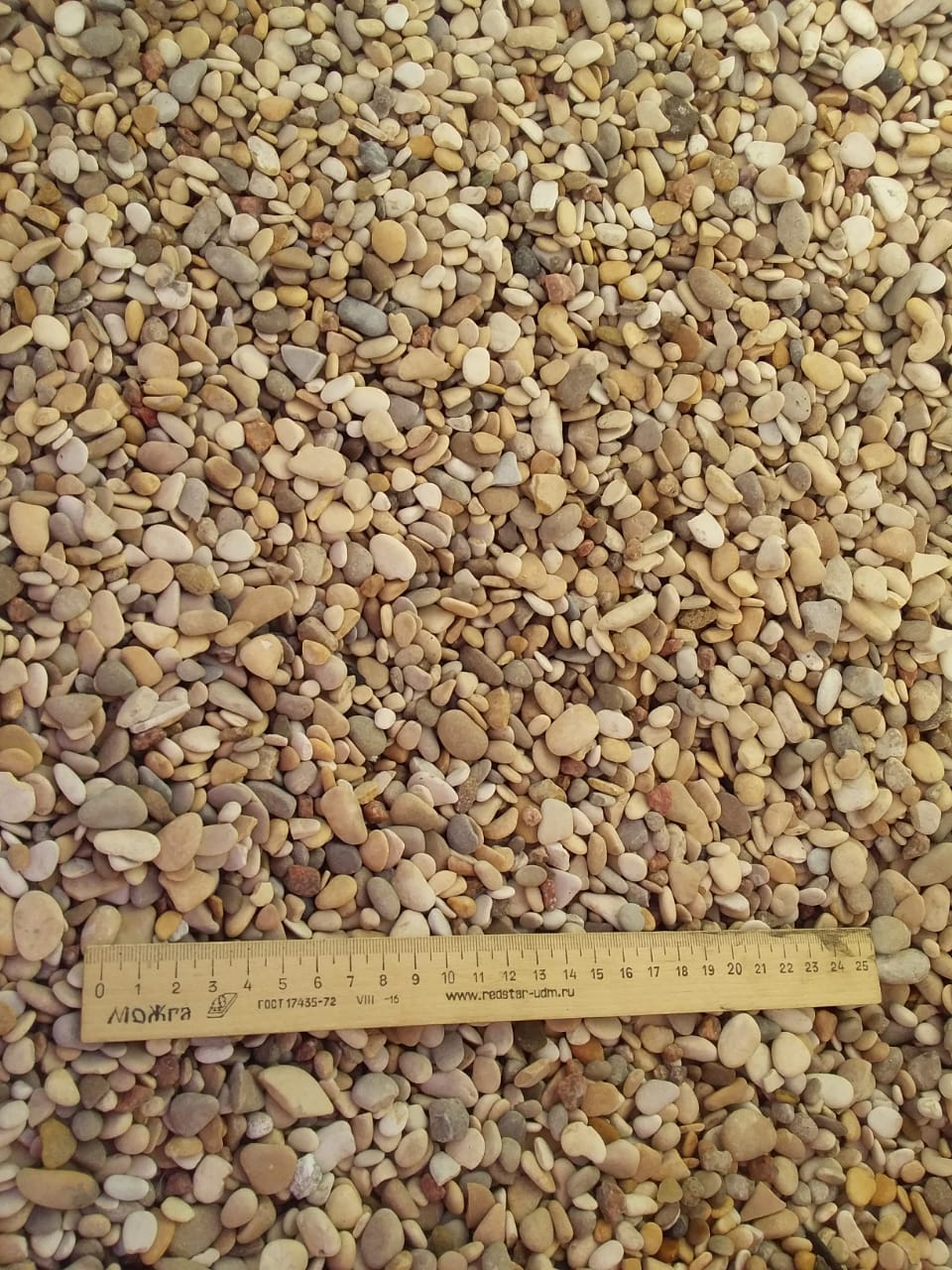 Различается галька по цвету и размеру. Галечником мы называем гальку мельче 30 мм, а голышом крупнее 100 мм. Голыш более 300 мм переходит в категорию - валуны, а валуны более 500 мм мы классифицируем уже как глыбы. Галька бывает как морская, так и речная и озерная, по своей форме бывает плоская и круглая...