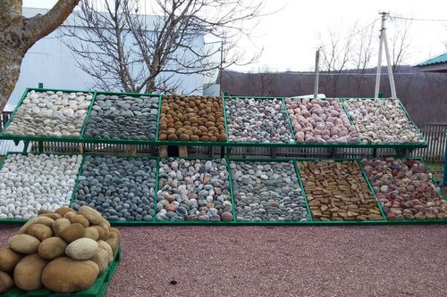 - Галька — камни плоско-округлой формы. Галька разделяется по происхождению: речная и морская. В промышленных условиях гальку делают из гранита, мрамора и кварцита. Размер гальки определяется с помощью фракций. Так, например, галька фракции 2-4 означает, что в составе этой каменной массы будут камни круглой формы от 2 до 4 см в диаметре. Галька фракции 5-10 означает, что тут будут камни от 5 до 10 см в диаметре.
